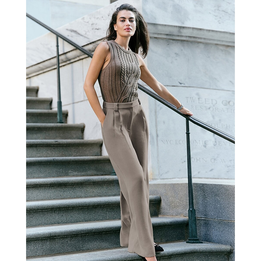 Featuring a multi cable knit design, this sweater tank is complete with a ribbed crew neck and pairs perfectly with denim for a trendy look.