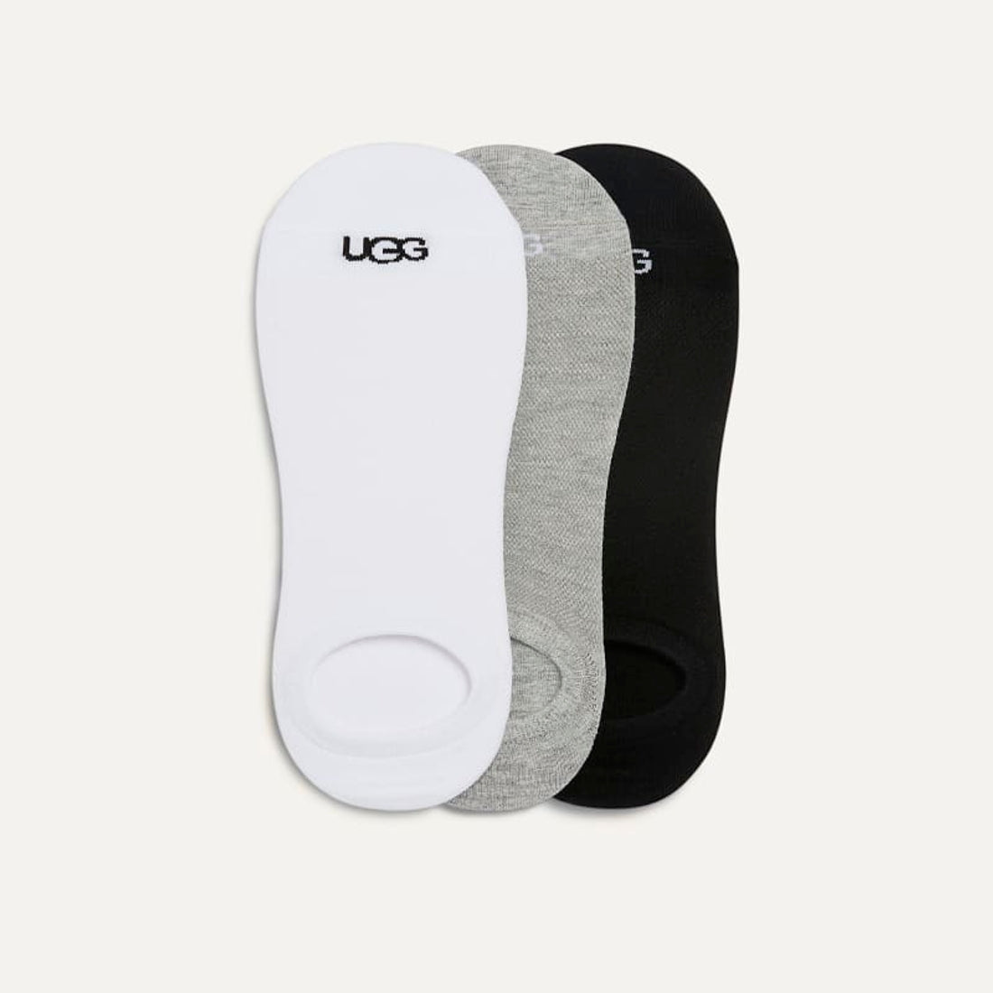 Finely woven from a soft cotton blend, this set features three pairs of soft, breathable low-cut socks, incorporating a no-show profile that lets them go incognito in sneakers. | Pack of three no-show socks. Cotton Blend - 58% Responsible Cotton/39% Recycled Polyester/3% Elastane. Responsible Cotton means: responsible cotton sourcing scheme cotton, recycled cotton, or organic cotton. Slip-resistant grip at heel. The UGG® Logo on toe. M/L fits shoes size: 7-10. L/XL fits shoe size: 10.5-13.5. Imported. | UGG® Men's Oliver No Show 3 Pack Cotton Blend in White/Grey/Black, Size M/L