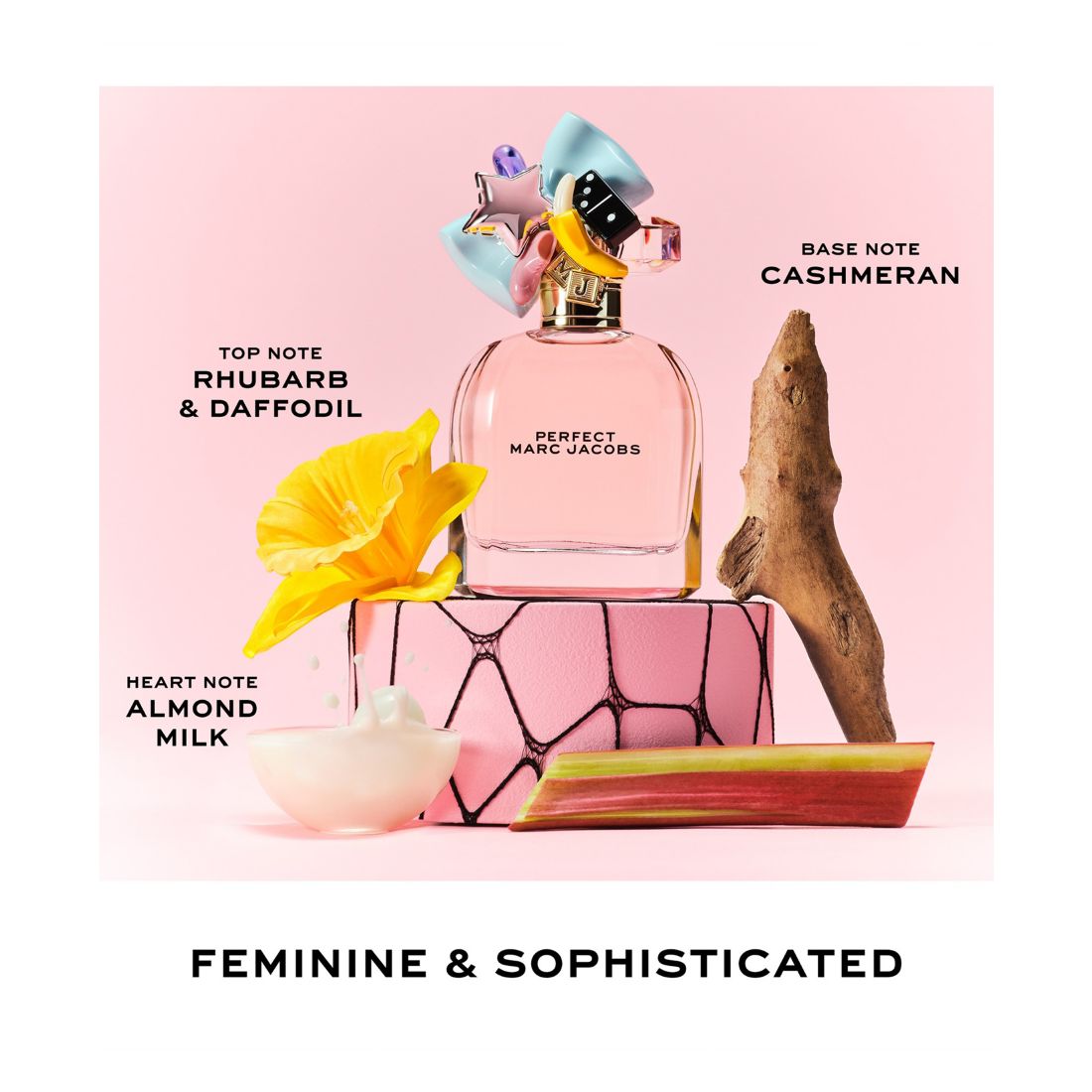 Absolutely perfect just the way you are. With Perfect Marc Jacobs Eau de Parfum for women, the designer sends the message out loud and clear: you don't need to change a thing. A fragrant manifesto to inspire you to practice self-love, self-acceptance, and self-care by embracing all the unique quirks that make you who you are. As Marc Jacobs himself likes to say: ""I'm perfect as I am"".This is a playful, unexpected comfort floral perfume for women who know and cherish who they are for what they are, a scent for adventurous souls who nurture their individuality and seek out originality in everything they do. Breath-takingly bright and modern, Perfect may be unconventional, but remains an utterly feminine eau de parfum for women comfortable with their own bodies and minds. It's all about the delicious contrast of being here, with a sparkling, juicy facet clashing and intertwining with a deeply grounding comfort scent. Tangy, mouth-watering rhubarb opens the show with a flood of fragrant juiciness, with solar daffodil hot on its heels. This floral fruity accord is tempered with smooth, creamy almond milk at the heart, finishing off with a gorgeous, mellow dry-down of cedarwood and cashmeran skin scent. Perfect is nothing you would expect and everything it needs to be. #MJPerfect #PerfectAsIAm