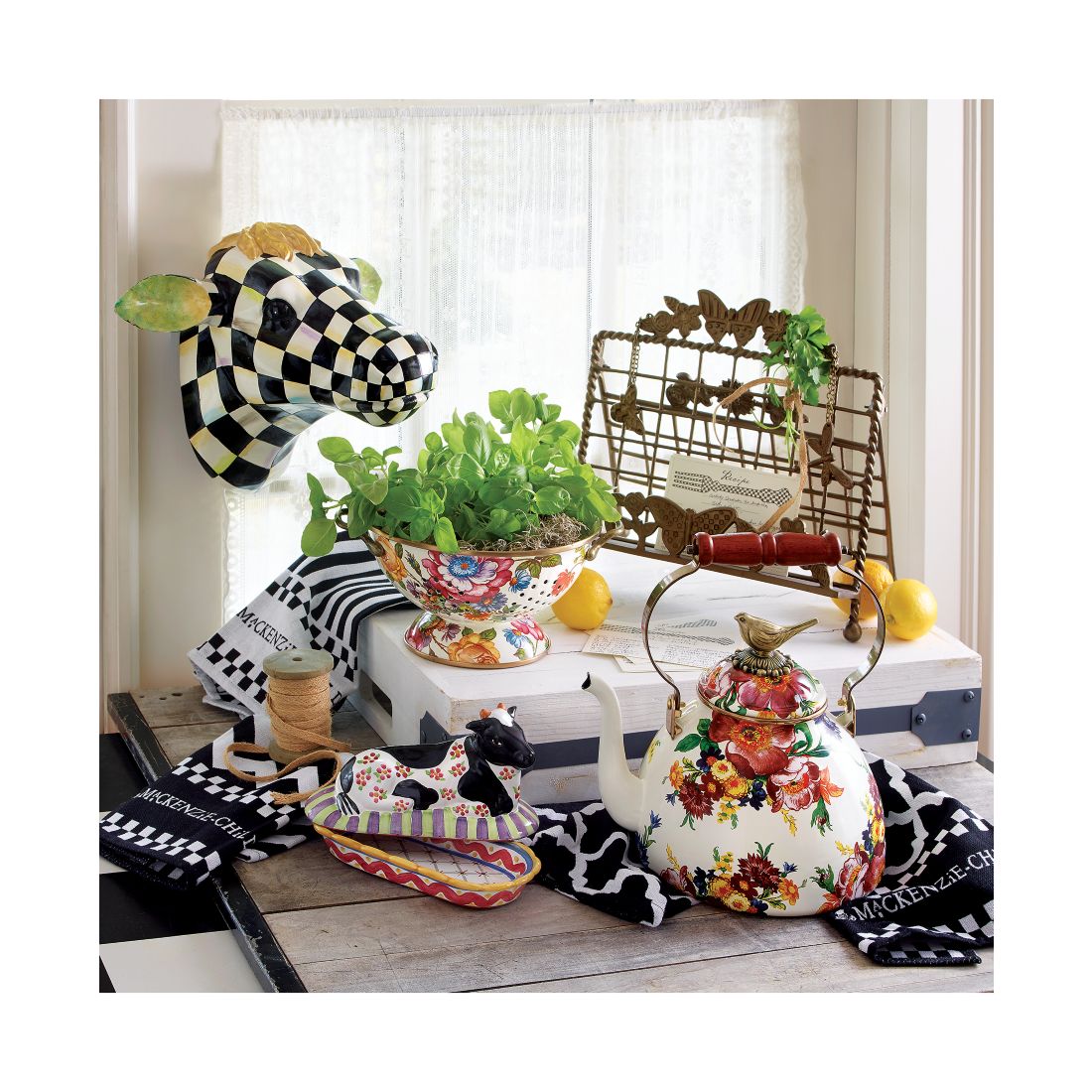 The practical is pretty with this colander from the Mackenzie-Childs Flower Market Collection. Its sleek enameled steel is highlighted with vibrant botanicals for lasting style.