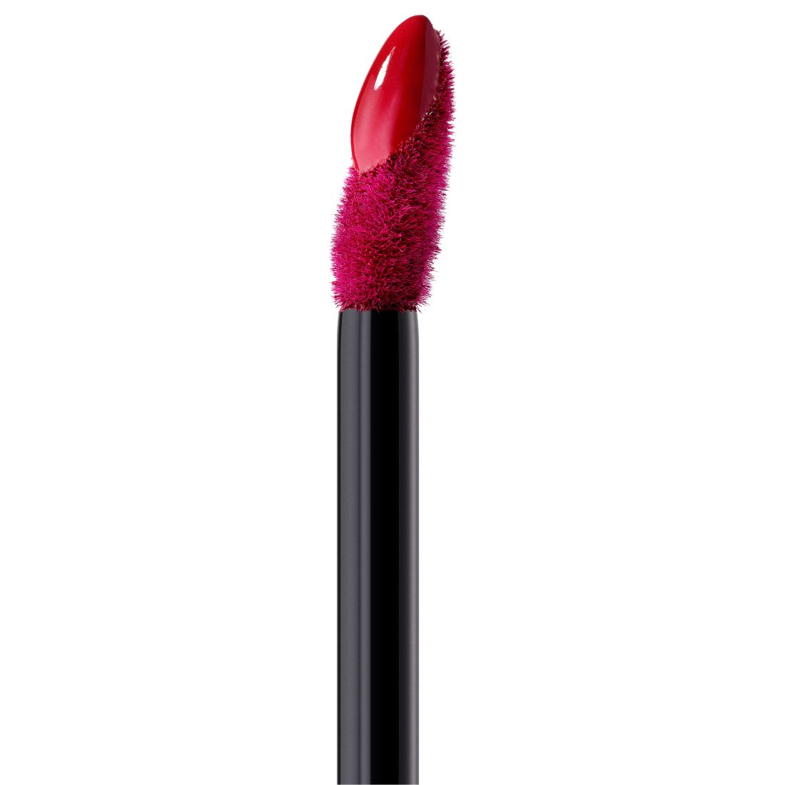 Color: locked. Comfort: loaded. Lock in 24 hours of weightless color with Mac's kissproof, transfer-proof and waterproof liquid lipstick. Finally, your lips are ready to drink it down, get it on and go all out, without ever touching it up. The slanted, tapered precision applicator effortlessly doses lips with smooth, full, even color, with a pointed tip that provides expert precision and controlled application. Mac's longest-wearing liquid lipstick to date is housed in luxe, high-tech packaging. Plus, it's as easy to put on as it is to take off!