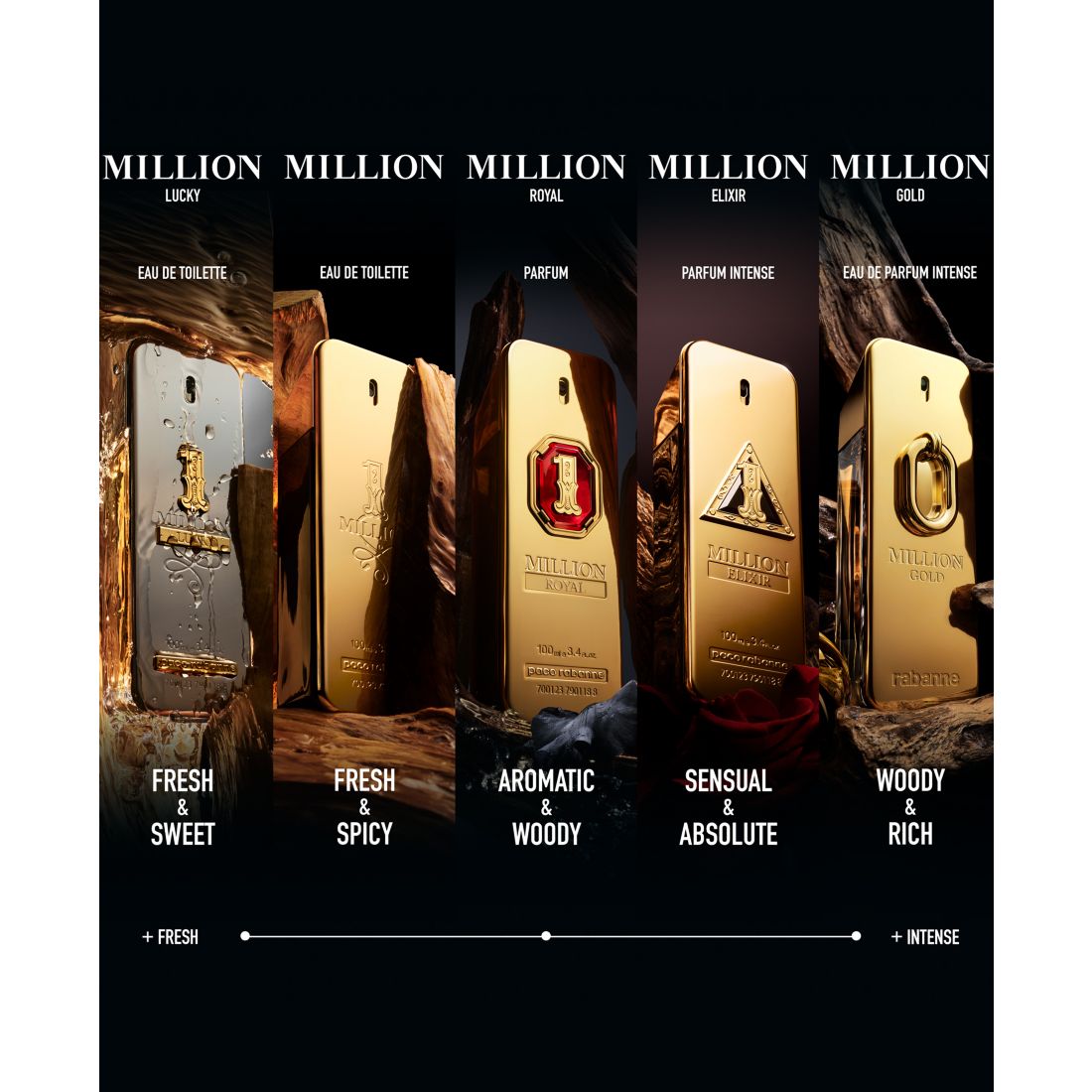 Enter the 1 Million Royal kingdom with the ultimate men's cologne of defiant self-expression. 1 Million Royal Parfum by Rabanne is a bold, fresh and woody blend that collides with distinctive sensuality to unleash what makes you uniquely you. The legend is reborn with an unexpected blend of energizing lavender, vibrant cedarwood and sensual benzoin. The iconic 1 Million gold bar is reinvented for Royal, with accents of fearless red that echo jewels and royal insignias.
