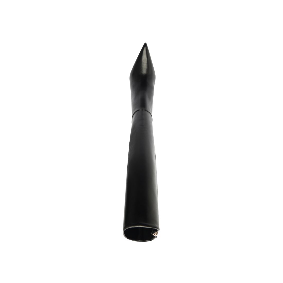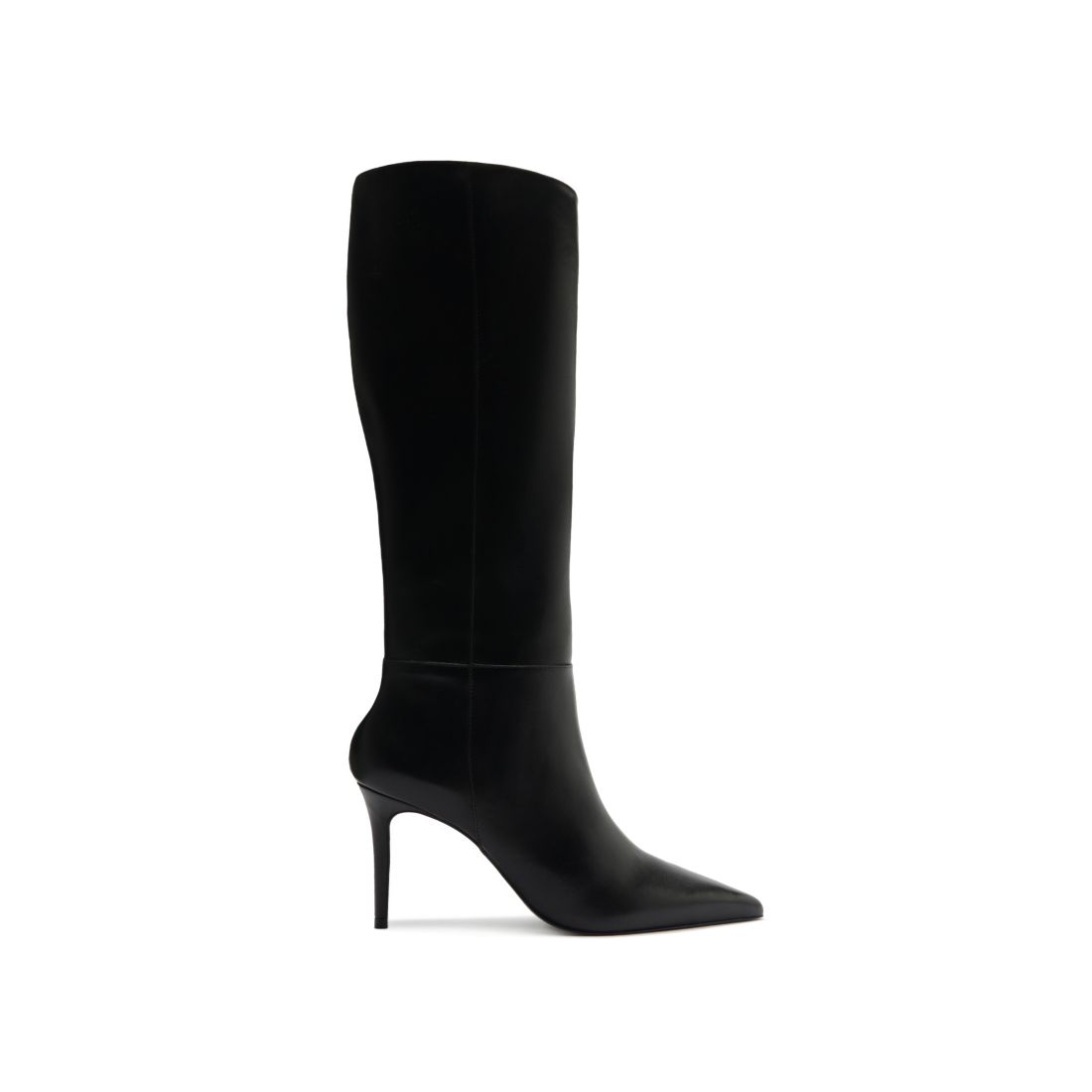 Boot up. This sleek knee-high silhouette is designed in leather with a pointed toe and stiletto heel.