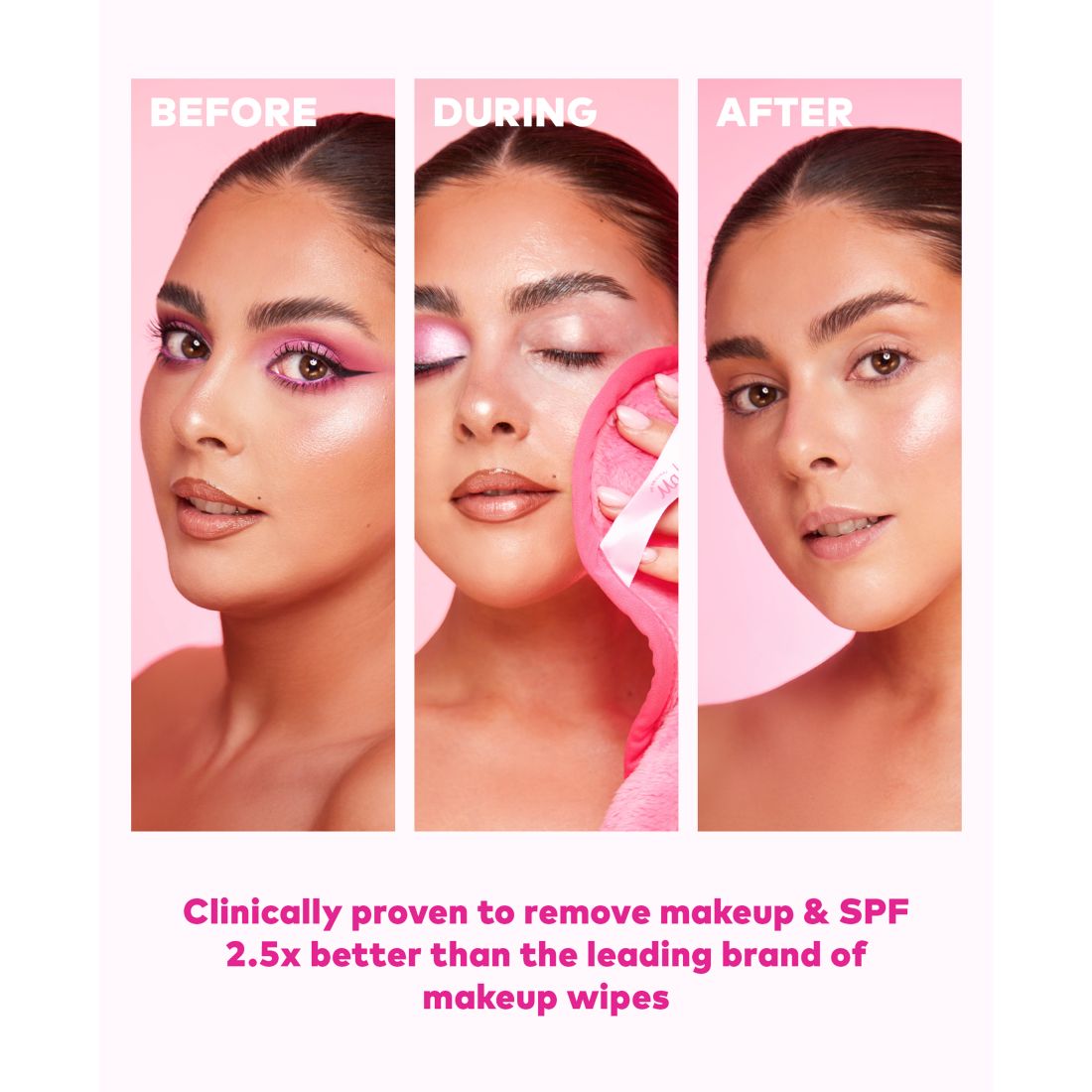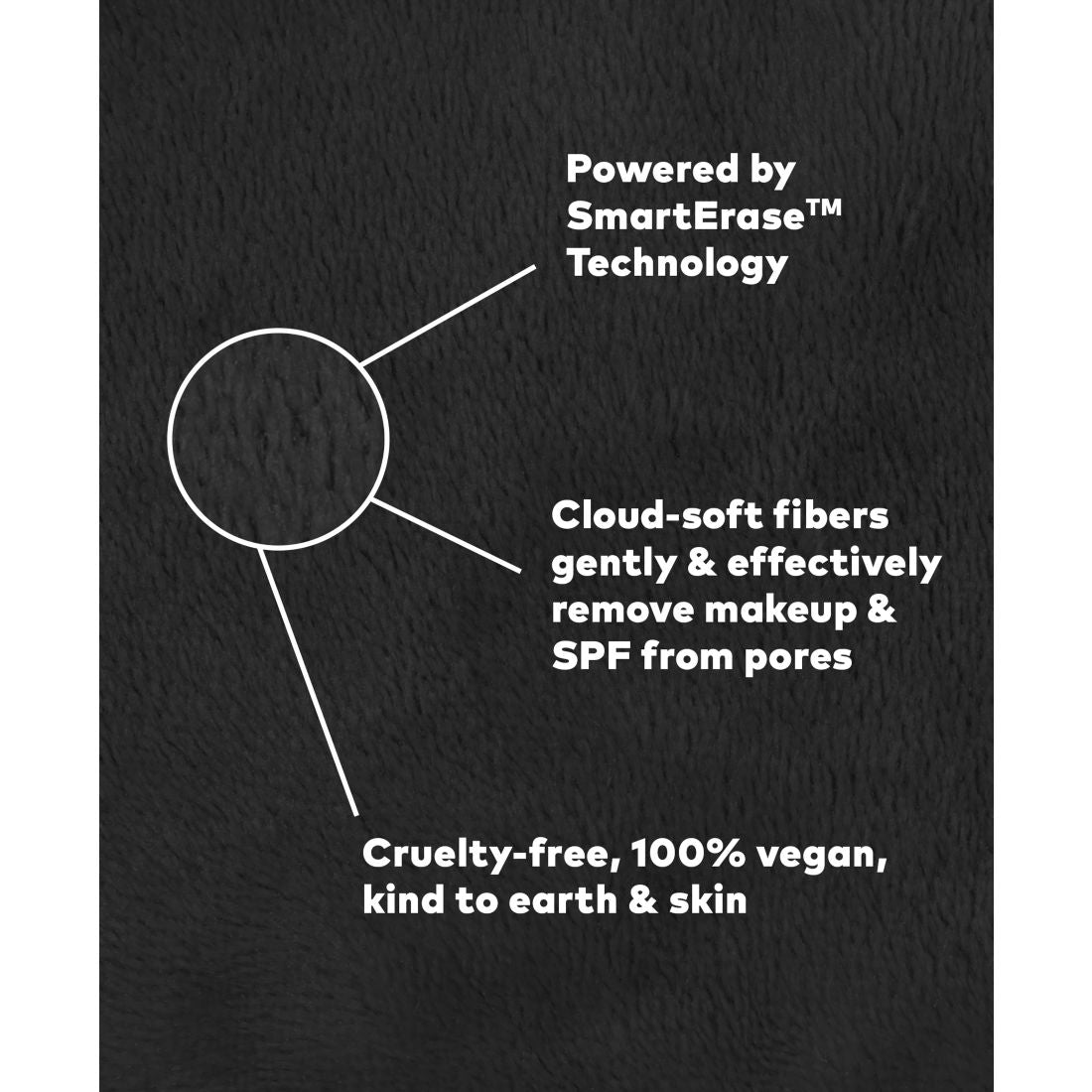 Premium, patented, cloud-soft fibers use SmartErase Technology to effectively release and lift makeup and sunscreen from pores without disrupting your skin barrier or stripping your skin of its own oils. Clinically proven to remove makeup and sunscreen 2.5 times better than the leading brand of makeup wipes with just water!