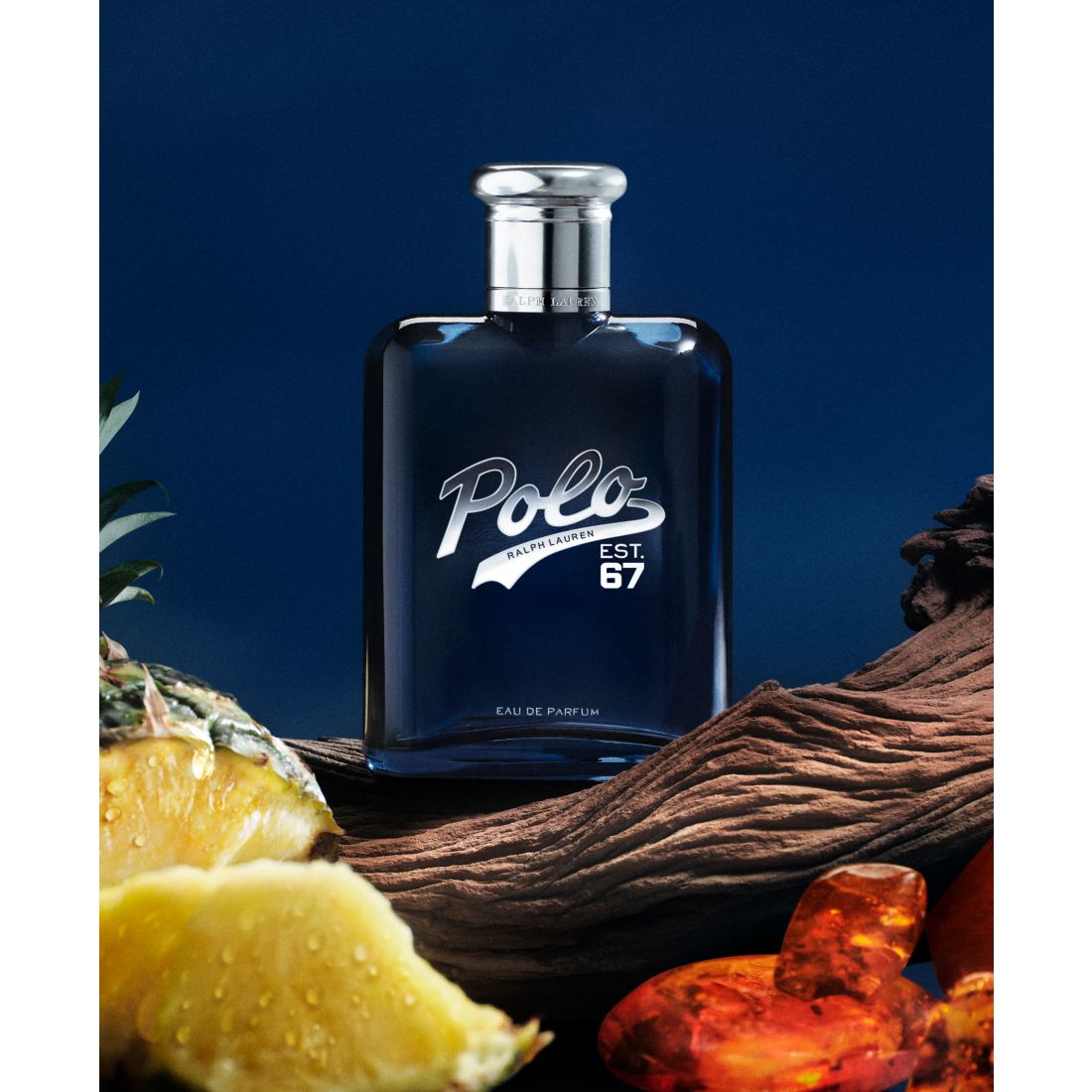 Bold. Addictive. Sensual. Ralph Lauren Polo 67 Eau de Parfum is a New fragrance for the man who relentlessly pursues his passions. An addictive pineapple intertwines with the deep warmth of cedarwood and benzoin, creating an intense fusion of invigorating freshness and smoldering sensuality. Design your dreams with Polo 67 Eau de Parfum. The iconic Polo branding is reimagined with a new logo that pays homage to the history of Polo. A luxurious midnight blue bottle is accented with a sporty silver Polo 67 logo and topped with a sleek chrome cap.