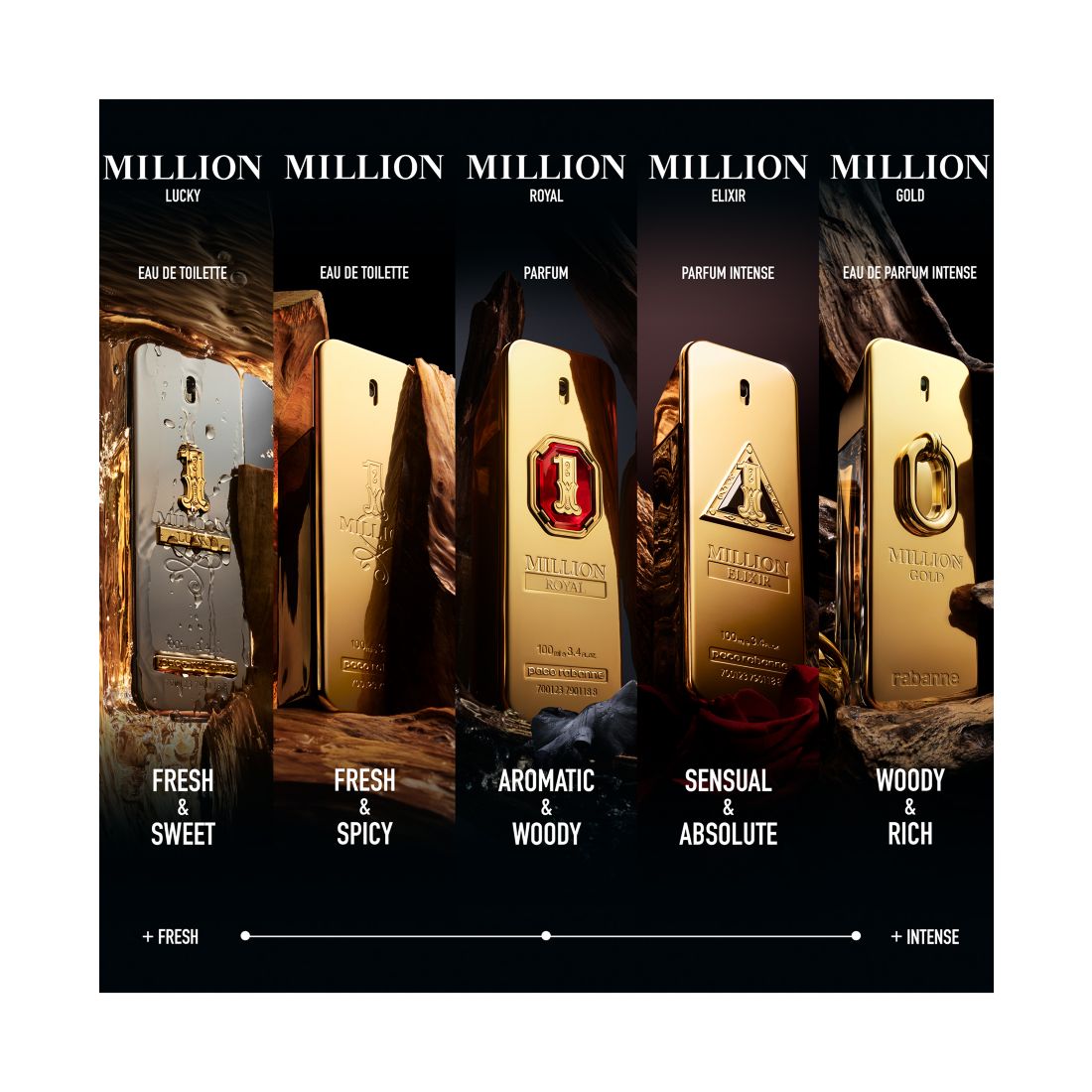 Celebrate him with this travel-friendly 1 Million Eau de Toilette Gift Set. The ultra-couture metal set, inspired by Rabanne's fashion, includes a small 1 Million Eau de Toilette and a matching travel spray. Featuring fresh and spicy notes of amber, leather and tangerine, this fragrance creates a captivating and intriguing scent for the kings in your life.