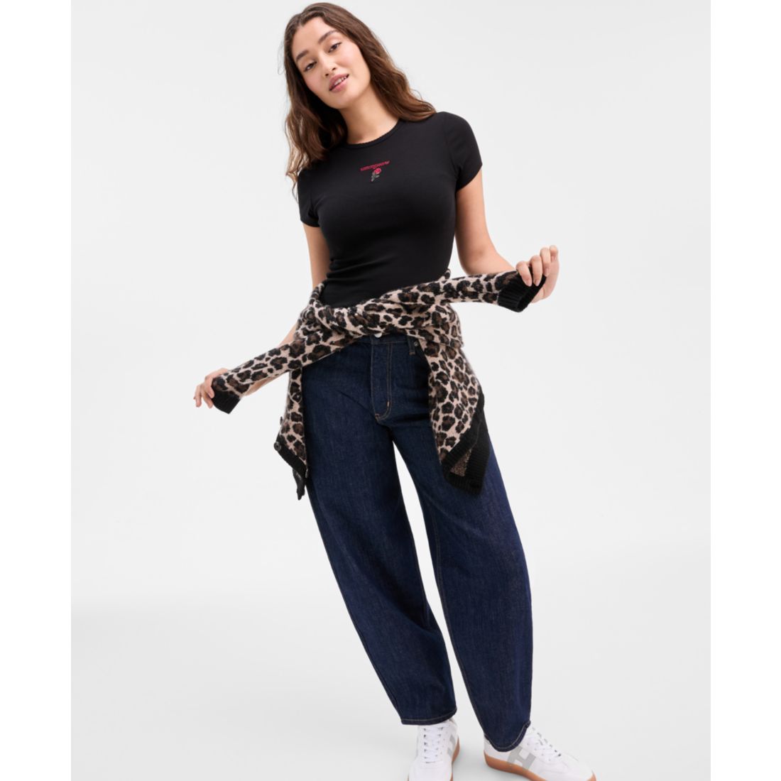 Tommy Jeans Women's Slim Rose Logo Ribbed Short-Sleeve T-Shirt