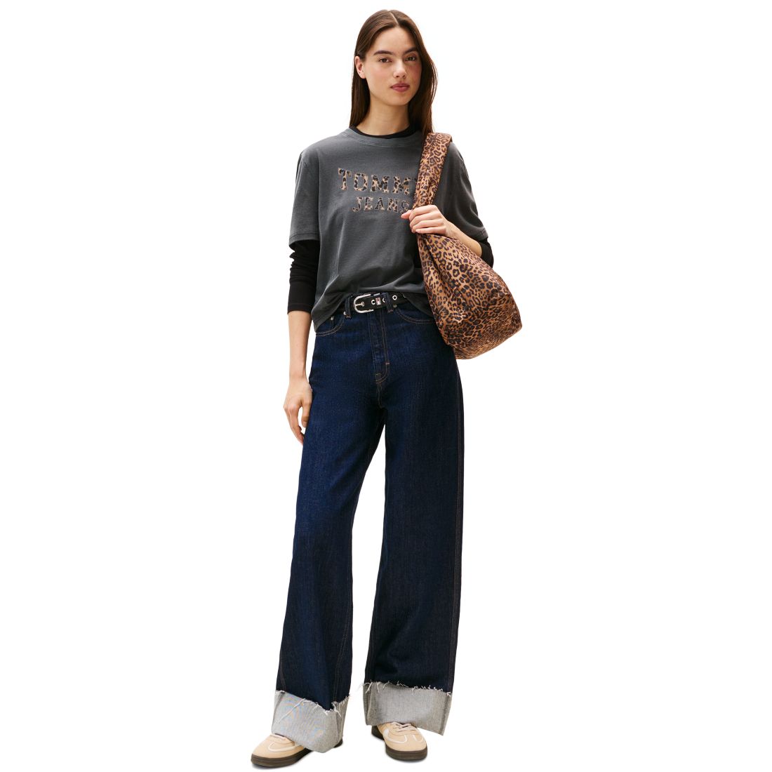 A leopard-print logo adds a flash of fierceness to the laid-back cotton shape of this short-sleeve T-shirt from Tommy Jeans.