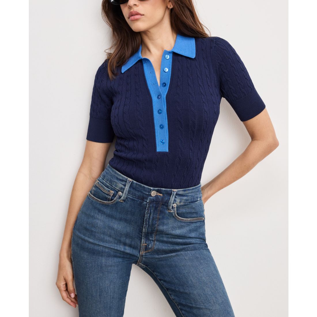 Good American makes sure your top is always tucked with this sleek bodysuit, a soft cable knit design topped off with a contrasting Polo collar.