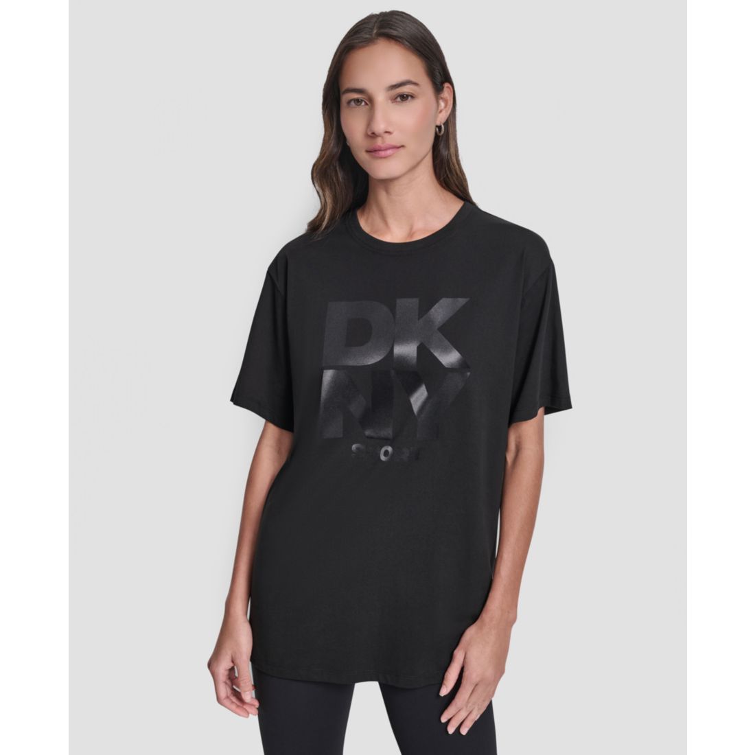 Enjoy a comfortable, laid-back style with this Dkny oversized tunic T-shirt, designed for everyday wear. Featuring a classic crewneck and short sleeves, it offers a relaxed, easy fit. The sporty stacked satin transfer logo adds a modern, stylish accent.