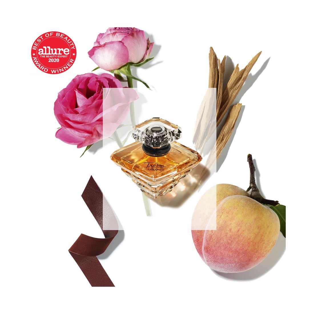 Lancome Tresor Eau De Parfum Spray is a warm and spicy perfume with enchanting rose, juicy peach, and fresh apricot blossom. This women's perfume embodies flourishing love with its addictive floral notes balanced with subtle sandalwood and sweet vanilla. Tresor is elegant and sophisticated.