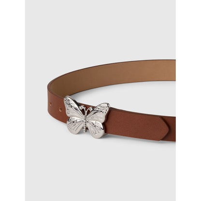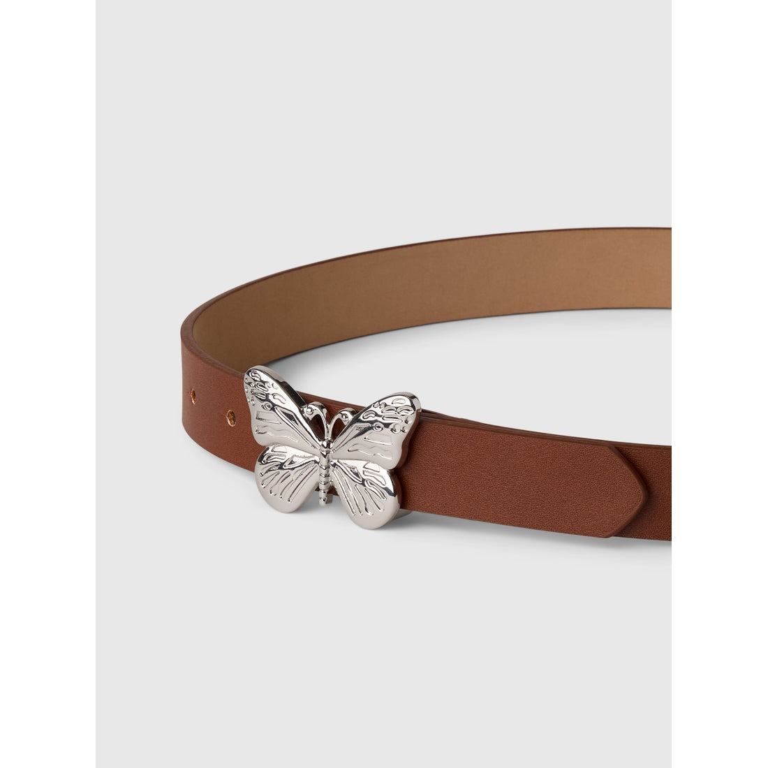This belt is made with a vegan leather upper. Butterfly buckle. This product was made in a factory that invests in gender equality and women’s empowerment. Through RISE (Reimagining Industry to Support Equality) and Gap Inc. ’s program P. A. C. E. (Personal Advancement & Career Enhancement), we support people who make our clothes to build the skills, knowledge, confidence, and resilience needed to advance in work and life. Learn more. here. For more fit and sizing info, check out our Size Guide. Width: 1" Length (Size S): 29"