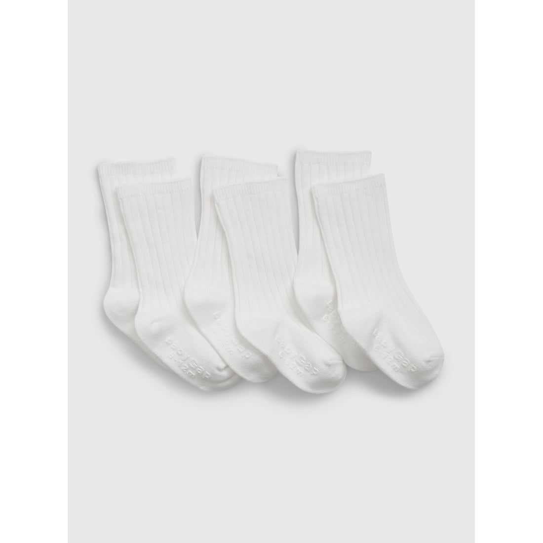 Made with 81% organically grown cotton. Organic cotton is better for people and the environment because it's grown without the use of harmful synthetic pesticides and fertilizers. Soft stretch knit crew socks. Ribbed top. Reinforced toe and heel. This product was made in a factory that invests in gender equality and women’s empowerment. Through RISE (Reimagining Industry to Support Equality) and Gap Inc. ’s program P. A. C. E. (Personal Advancement & Career Enhancement), we support people who make our clothes to build the skills, knowledge, confidence, and resilience needed to advance in work and life. Learn more. here. For more fit and sizing info, check out our Size Guide.