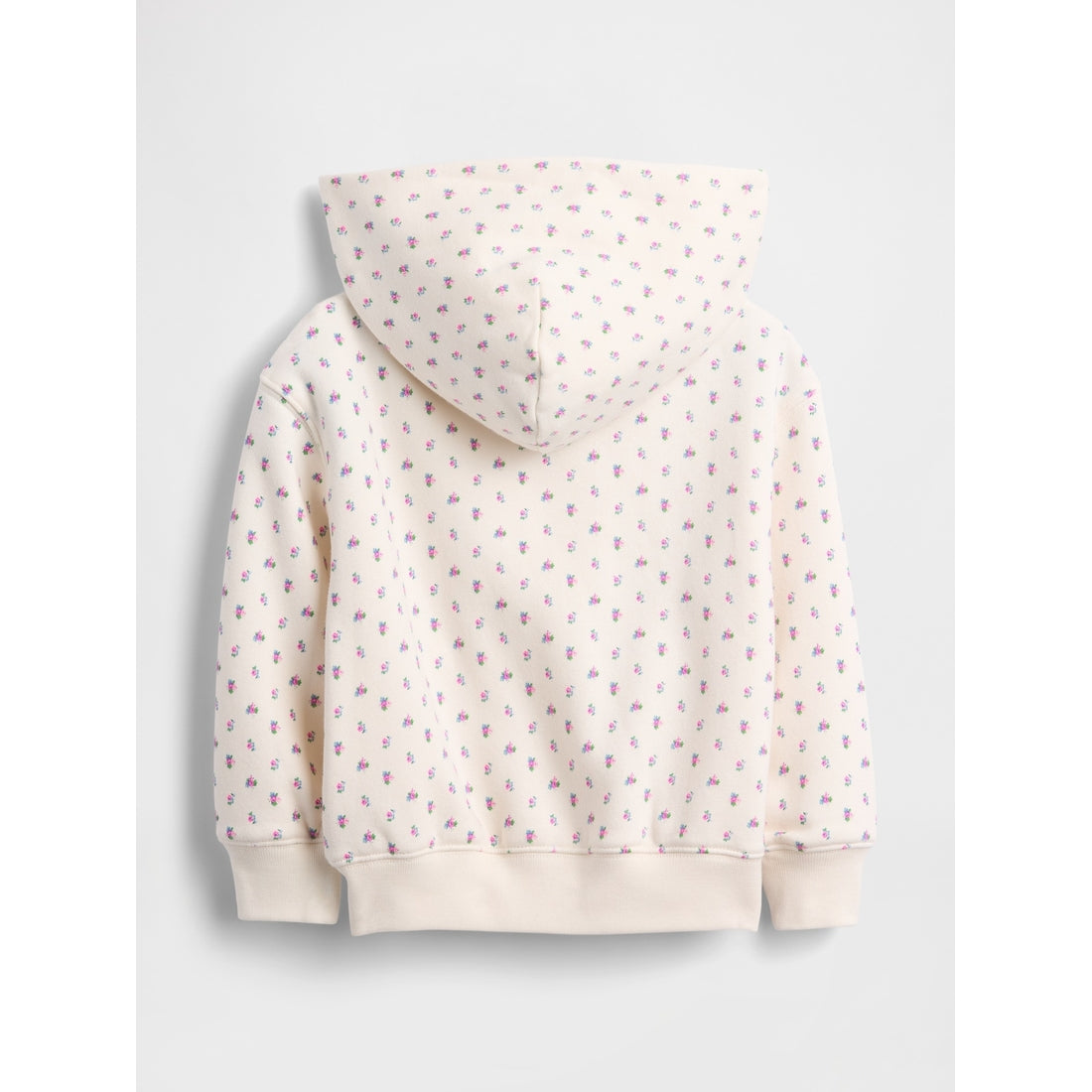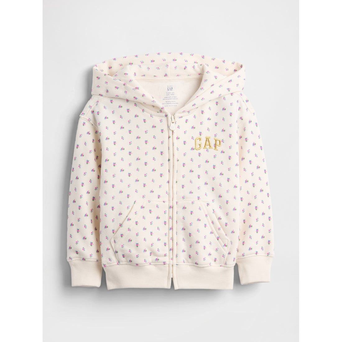 Soft cotton-blend fleece hoodie. Hooded neckline. Long sleeves with banded cuffs. Zipper front. Metallic Gap logo at front. Front kanga pockets. This product was made in a factory that invests in gender equality and women’s empowerment. Through RISE (Reimagining Industry to Support Equality) and Gap Inc. ’s program P. A. C. E. (Personal Advancement & Career Enhancement), we support people who make our clothes to build the skills, knowledge, confidence, and resilience needed to advance in work and life. Learn more. here. Straight, easy fit. Hits at the hip. Sizes range from baby to toddler.