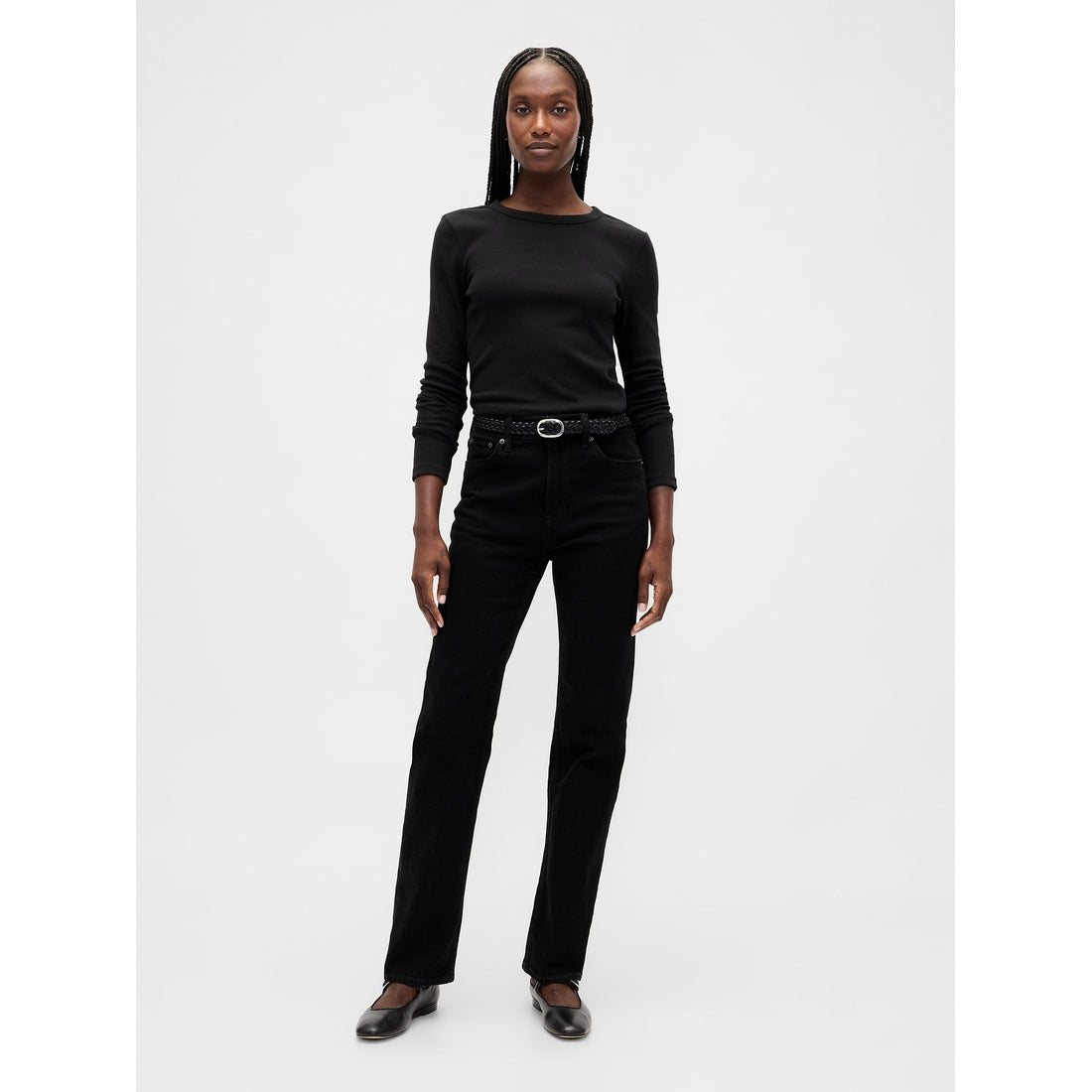 Soft, stretch cotton-modal blend T-Shirt in a slightly cropped length. Crewneck. Long sleeves. This product was made in a factory that invests in gender equity and women’s empowerment through RISE. Learn more at gapinc. com/equity. Fit: Stretch-to-Fit. Slim & stretchy that forms to your shape. 24. 4’’ slightly cropped length, hits above the hip. Models wearing Gap size S are 5'8"–5'11" (172–180 cm) with 23. 5–26" (60–66 cm) waist & 33–38" (84–97 cm) hips. Models wearing Gap size XL are 5'8"–5'11" (172–180 cm) with 34–36” (86–91 cm) waist & 45–50" (114–127 cm) hips.
