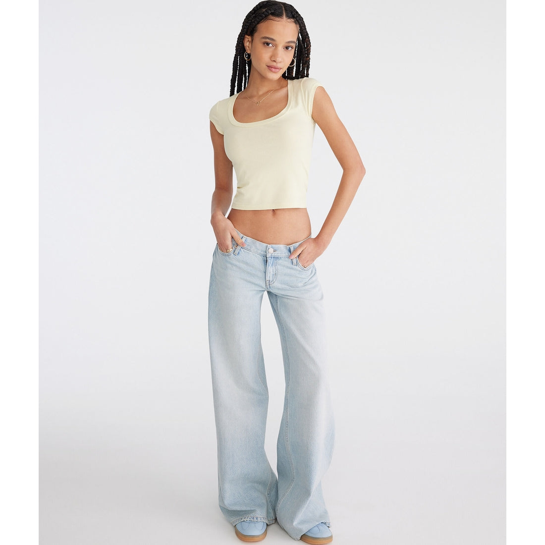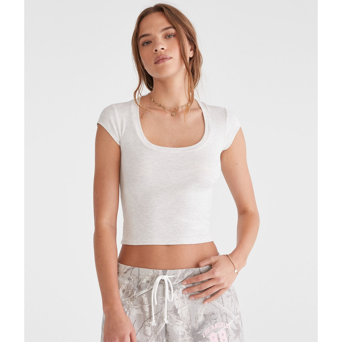Aeropostale Womens' Seriously Soft Ribbed Scoop-Neck Baby Tee