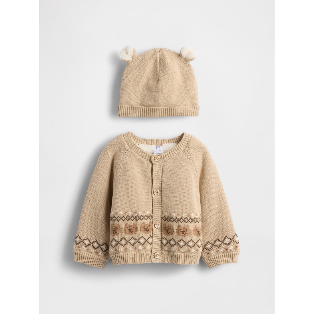 Baby Sherpa-Lined Bear Cardigan Sweater Set