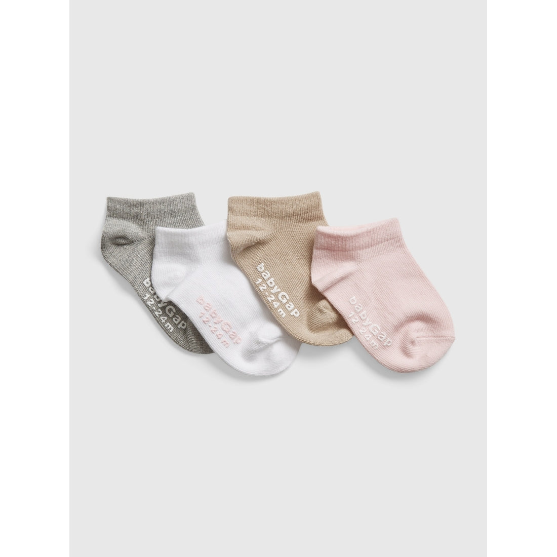 Soft, stretch knit no-show socks. Ribbed top. Reinforced toe and heel. Assorted colors. This pair of socks is made with 10% recycled polyester. Compared to virgin materials, using recycled materials helps to reduce resource use and waste. This product was made in a factory that invests in gender equality and women’s empowerment. Through RISE (Reimagining Industry to Support Equality) and Gap Inc. ’s program P. A. C. E. (Personal Advancement & Career Enhancement), we support people who make our clothes to build the skills, knowledge, confidence, and resilience needed to advance in work and life. Learn more. here. For more fit and sizing info, check out our Size Guide.