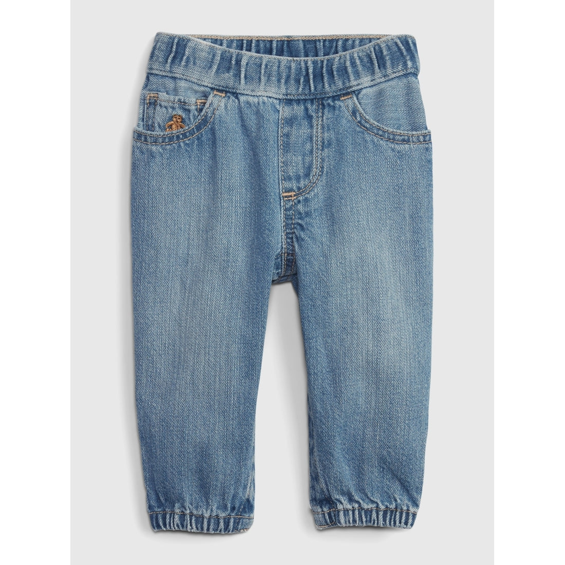 Soft denim bubble jeans. Elasticized waist. Classic five-pocket styling. Elasticized hem. Responsibly Made: This pair of jeans is made with 5% recycled cotton and is part of our Washwell program, which uses at least 20% less water as compared with conventional wash methods. We’ve saved over a billion liters of water through Washwell since 2016. This product was made in a factory that invests in gender equality and women’s empowerment. Through RISE (Reimagining Industry to Support Equality) and Gap Inc. ’s program P. A. C. E. (Personal Advancement & Career Enhancement), we support people who make our clothes to build the skills, knowledge, confidence, and resilience needed to advance in work and life. Learn more here. Easy, pull-on waist. Easy through the hip and thigh. Tapered leg.
