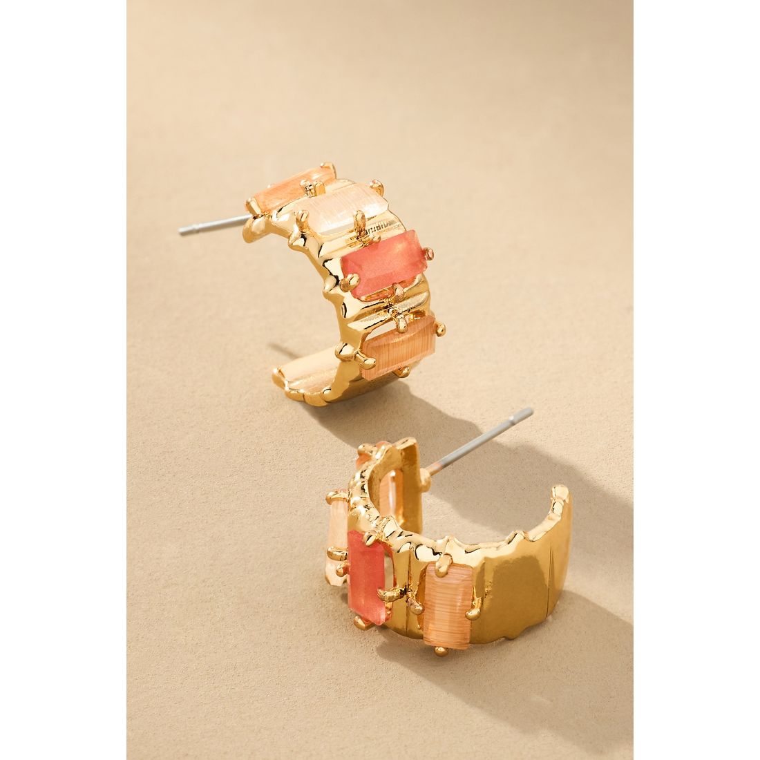 14k gold-plated brass, glass, cat's eye stone, cubic zirconia Post styling Imported | Crystal Baguette Huggie Hoop Earrings by Anthropologie in Orange, Women's, Gold/Plated Brass/Glass