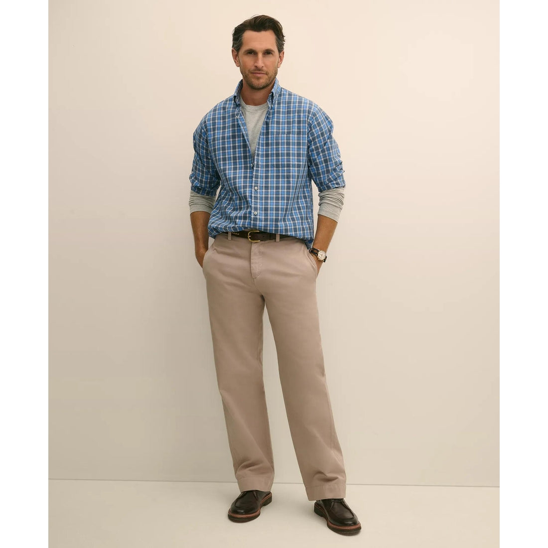 Inspired by a vintage Brooks Brothers chino from our archives, this pant is an enduring icon for a reason. It's as appropriate with a T-shirt or OCBD as with a blazer and tie. Crafted in a sturdy 100% cotton twill with quarter-top pockets and a looser yet still polished fit, this chino has earned its place in your wardrobe.