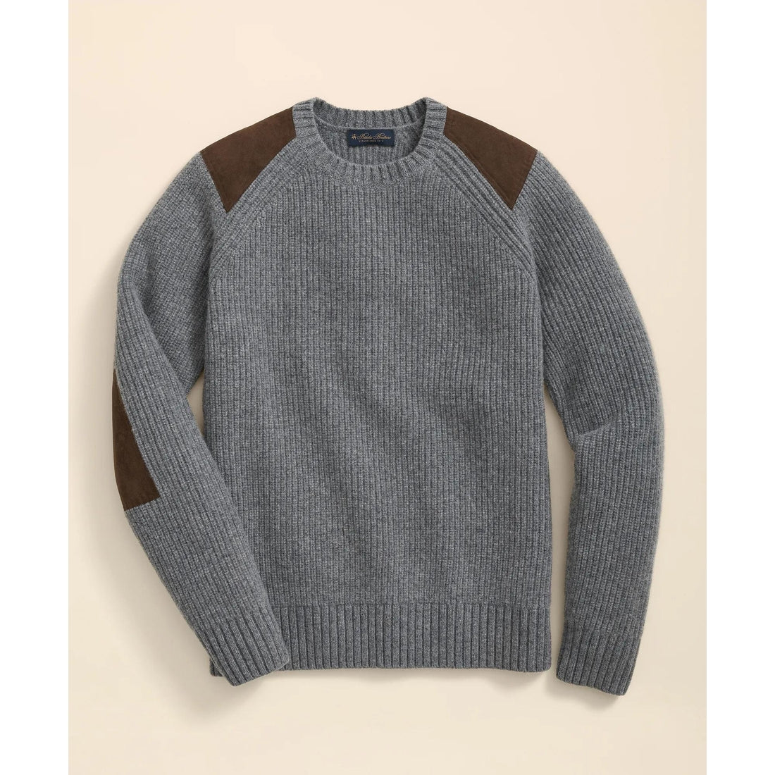 Inspired by traditional military styles, our sweater features a tactile chunky knit in a classic English rib pattern. We finished with faux suede elbow and shoulder patches for an elevated take on everyday looks.