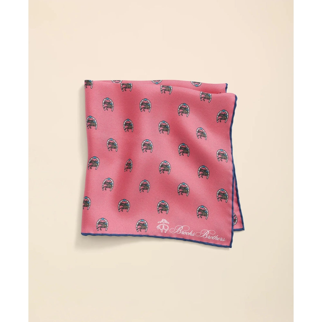 Italian-spun silk showcases a horseshoe-jockey motif that delivers sophistication for your sharpest looks. Hand-rolled edges finish our pocket square with beautiful attention to detail.