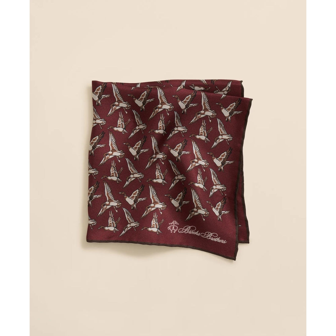 Italian-spun silk showcases a duck motif that delivers seasonal style for your sharpest looks. Hand-rolled edges finish our pocket square with beautiful attention to detail.